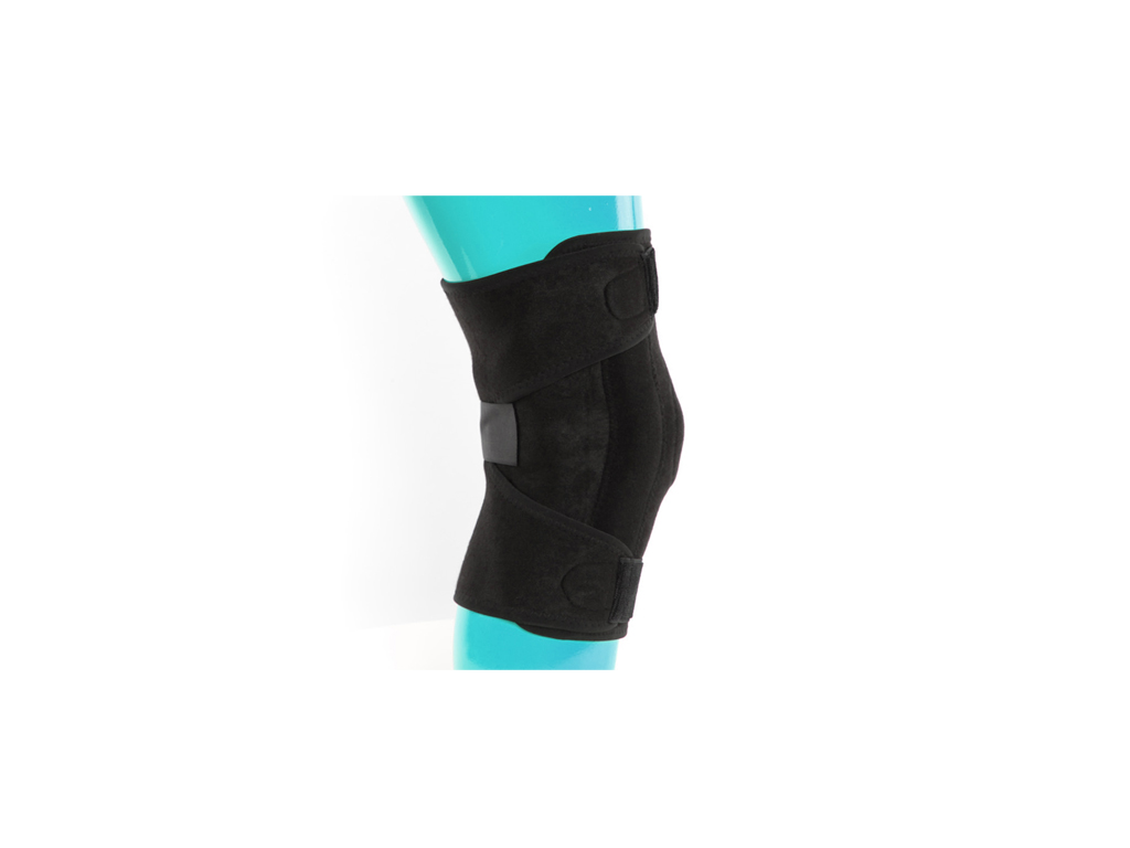 Το προϊόν επιγονατίδα ελαστική με μαξιλαράκι σιλικόνης και με αμφίπλευρη μεταλλική άρθρωση είναι κατασκευασμένο από διάτρητο NEOPRENE υλικό με εσωτερική πετσετέ (Jersey) επένδυση για μεγαλύτερη άνεση. Από την μηριαία πλευρά είναι ανοιχτή και το δέσιμο της γίνεται με διπλό Velcro αντίθετου κλεισίματος. Το δακτυλίδι της επιγονατίδας προσφέρει επιπλέον σταθεροποίηση και άνεση. Διαθέτει δυο (2) πλευρικές μπανέλες και επιπλέον εξωτερικά δεσίματα με Velcro για μεγαλύτερη σταθεροποίηση του νάρθηκα. Το προϊόν μπορεί να πλυθεί στο χέρι σε χαμηλές θερμοκρασίες 30 ° C.