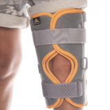 Ο κεντρικός ιμάντας στο ύψος της επιγονατίδας ενισχύει τη στήριξη, ενώ τα πλαϊνά straps ρυθμίζουν την περιφέρεια ώστε να προσαρμόζεται σε διαφορετικά μεγέθη μηρού και κνήμης.