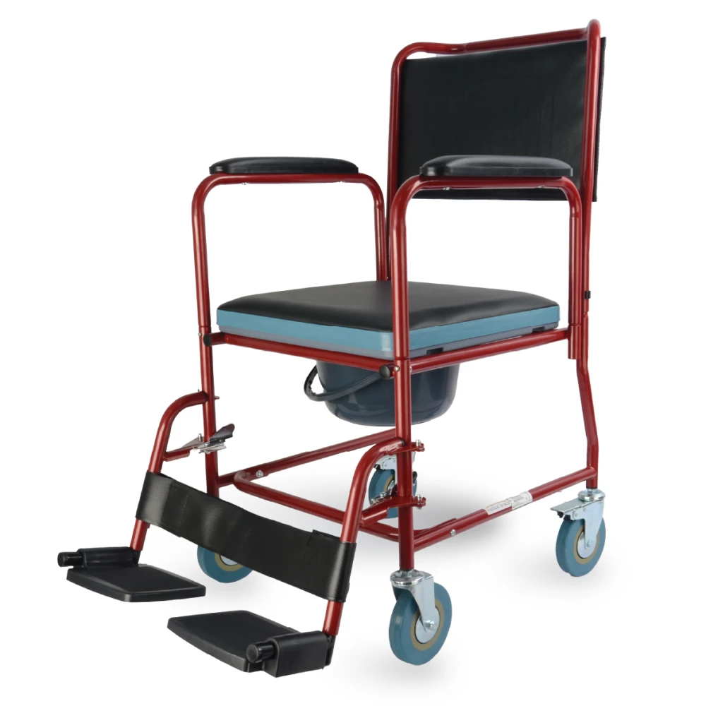 Το κάθισμα είναι εργονομικά σχεδιασμένο με δοχείο WC, ενώ οι αποσπώμενοι βραχίονες και τα αφαιρούμενα υποπόδια επιτρέπουν εύκολη πρόσβαση και μετακίνηση. Με τροχούς 5 ιντσών για σταθερή κύλιση, το αμαξίδιο είναι κατάλληλο ακόμη και για στενούς χώρους.