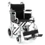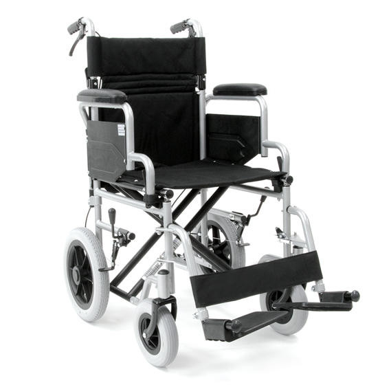 Στιβαρό αμαξίδιο μεταφοράς με έμφαση στην ασφάλεια του χρήστη και τον έλεγχο του συνοδού. Το διπλό ψαλίδι ενισχύει τη σταθερότητα του σκελετού, ενώ τα πλαϊνά “flip-up” διευκολύνουν τις μετακινήσεις προς/από κρεβάτι ή καρέκλα. Τα υποπόδια αφαιρούνται για περισσότερο χώρο κατά την έγερση και ρύθμιση θέσης. Τα φρένα συνοδού επιτρέπουν άμεσο σταμάτημα, ενώ η ζώνη ασφαλείας και ο ιμάντας γάμπας προσφέρουν πρόσθετη συγκράτηση κατά τη μεταφορά.