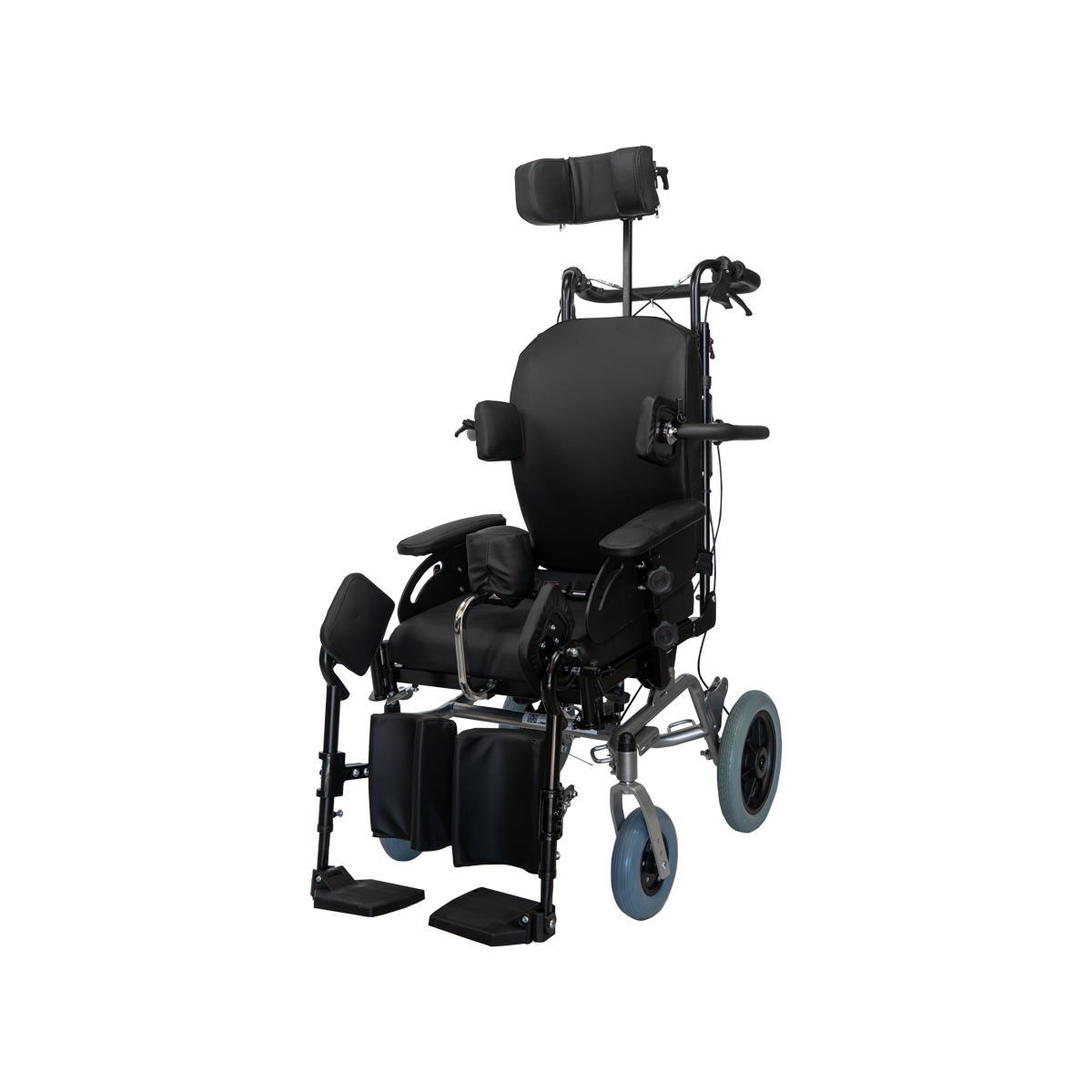 Η στιβαρή ατσάλινη κατασκευή του προσδίδει αντοχή, ενώ το αναπαυτικό κάθισμα και τα ρυθμιζόμενα μπράτσα/πλάγια πάνελ παρέχουν σταθερότητα και σιγουριά. Οι συμπαγείς τροχοί 12” πίσω και 8” μπροστά, μαζί με τα ροδάκια αντι-ανατροπής και τα φρένα συνοδού, διασφαλίζουν εύκολη και ασφαλή μετακίνηση.