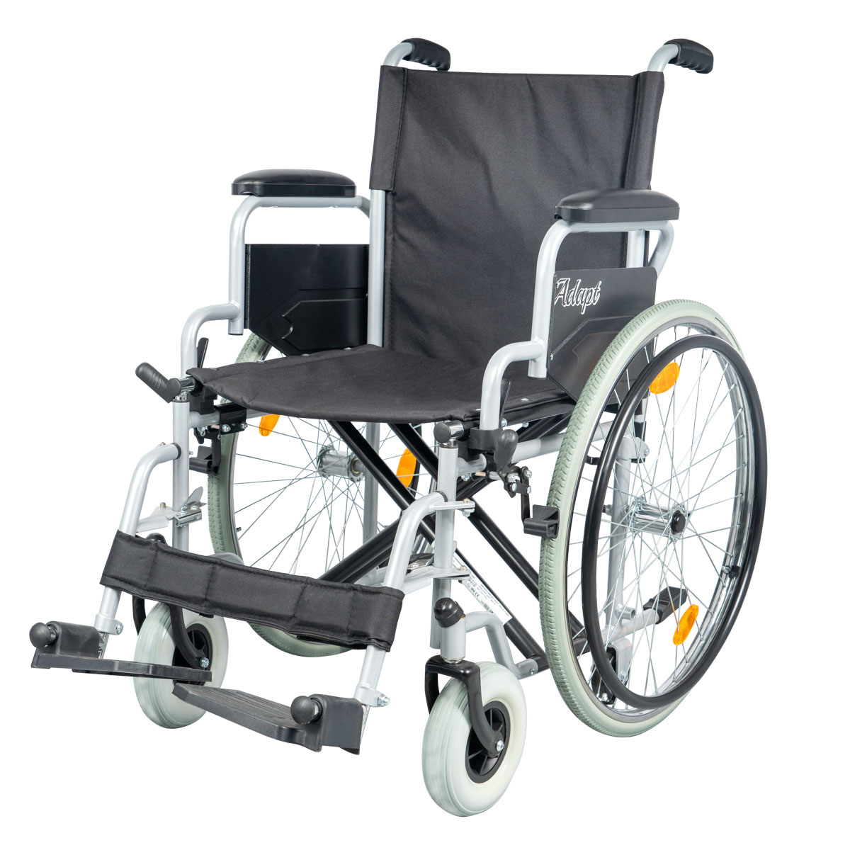 Το Adapt είναι «3-σε-1» πτυσσόμενο αμαξίδιο που προσαρμόζεται στον χώρο σας. Διατίθεται με 6 τροχούς στη συσκευασία για να περνά σε στενούς διαδρόμους και πόρτες: αφαιρείτε τα μεγάλα 24″ με Quick Release και χρησιμοποιείτε τους βοηθητικούς 3″ για ελάχιστο πλάτος. Προαιρετικά, με σετ πίσω τροχών 12″ (Quick Release) μετατρέπεται σε αμαξίδιο μεταφοράς.