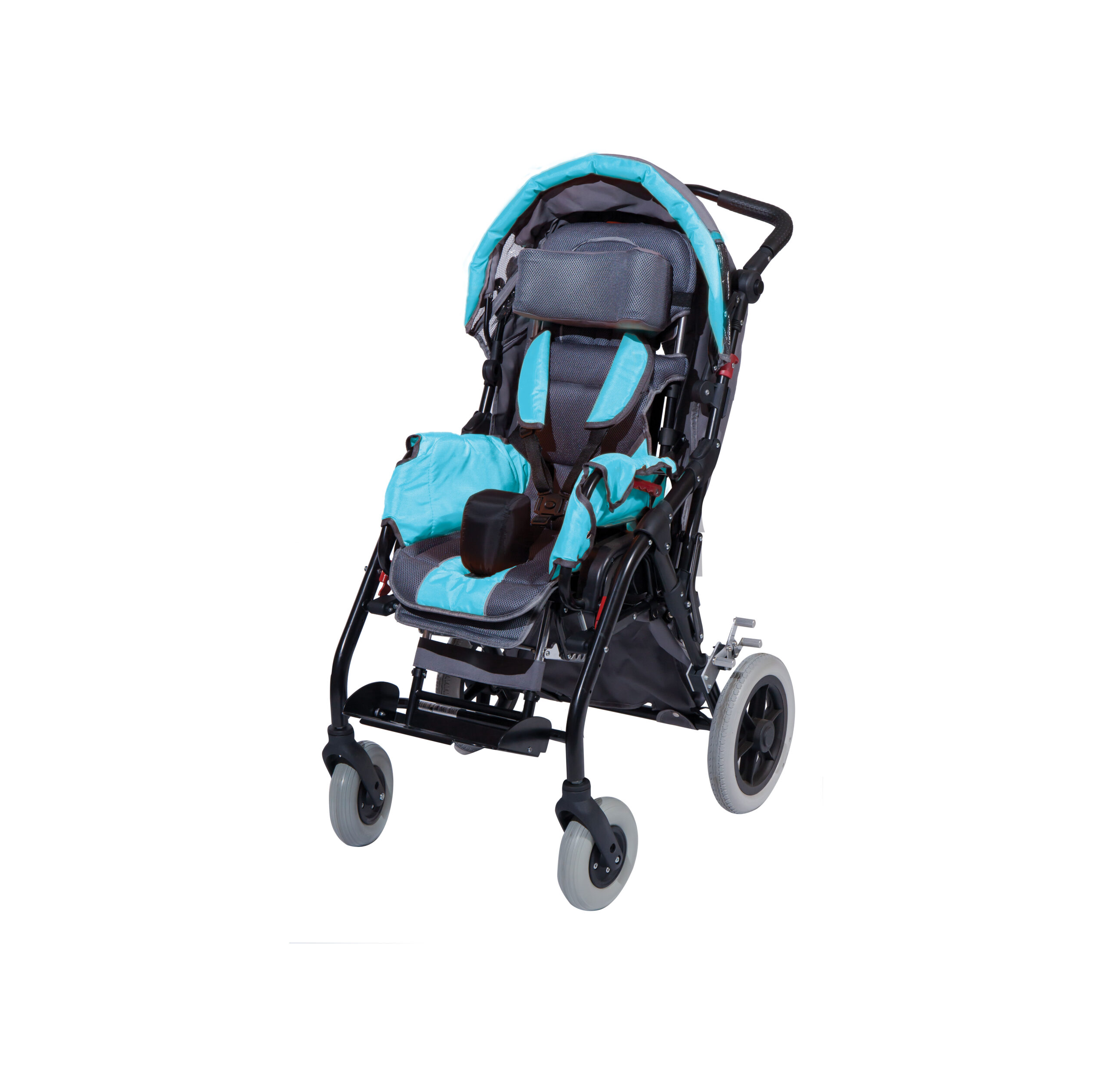 Διαθέτει ενισχυμένη ζώνη ασφαλείας, διαχωριστικό σκελών και σκίαστρο, που προσφέρει προστασία σε εξωτερικούς χώρους. Το αμαξίδιο υποστηρίζει πολλαπλές ρυθμίσεις, ώστε να προσαρμόζεται στις ανάγκες κάθε παιδιού, όπως ρυθμιζόμενη κλίση πλάτης, προσκέφαλο και υποπόδια.