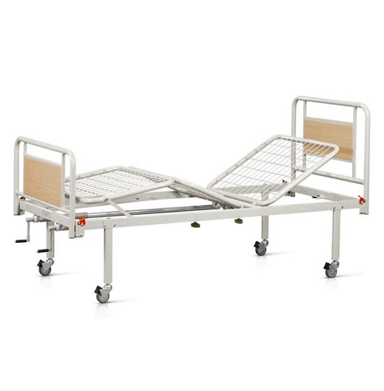 Η Δίσπαστη Κλίνη είναι σχεδιασμένη για να καλύψει πρακτικές και ασφαλείς ανάγκες φροντίδας στο σπίτι ή σε επαγγελματικό περιβάλλον. Διαθέτει δύο χειροκίνητες μανιβέλες, η μία με τηλεσκοπικό μηχανισμό και σπαστή λαβή, που επιτρέπουν ανεξάρτητη ανύψωση πλάτης και κάτω άκρων χωρίς ηλεκτρική παροχή.