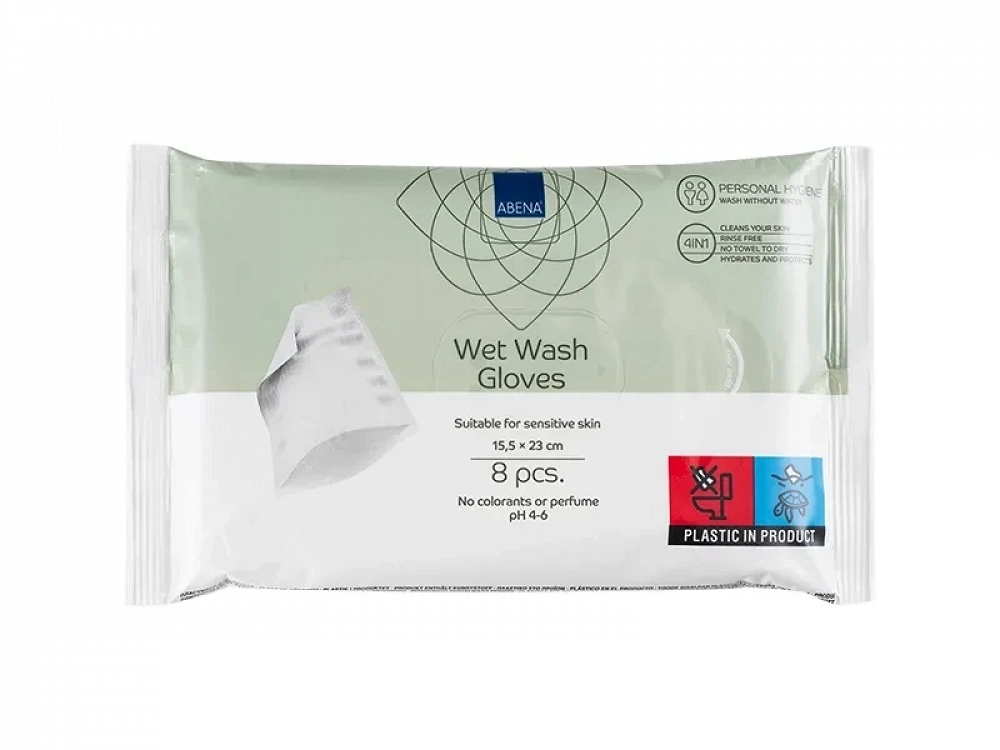 Γάντια καθαρισμού Wet Wash του Οίκου Abena. Ιδανική λύση για τον καθαρισμό κατακεκλιμένων ασθενών που δεν έχουν την δυνατότητα να αυτοεξυπηρετηθούν.