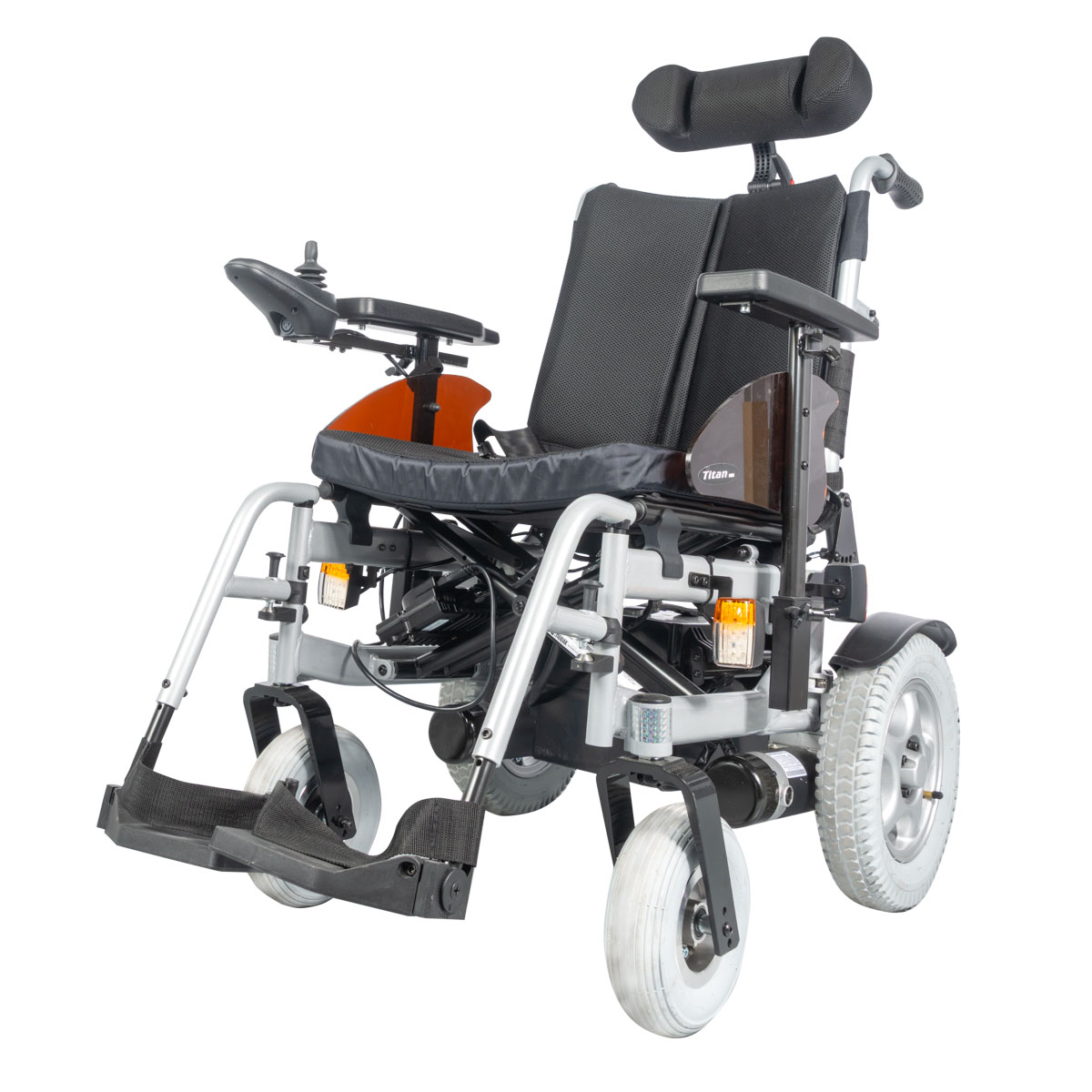 Το Ηλεκτροκίνητο Αμαξίδιο “TITAN” προσφέρει την απόλυτη ανεξαρτησία στην κίνηση, χάρη στον αναπαυτικό σχεδιασμό και τις πολλαπλές ρυθμίσεις του. Ο πτυσσόμενος σκελετός αλουμινίου διευκολύνει την αποθήκευση και τη μεταφορά, ενώ το προσθαφαιρούμενο μαξιλάρι καθίσματος με ιδιότητες επιβράδυνσης φλόγας εξασφαλίζει άνεση και ασφάλεια. Τα αποσπώμενα πλαϊνά και τα ρυθμιζόμενα υποπόδια προσαρμόζονται στις ανάγκες του χρήστη, ενώ ο εξοπλισμός περιλαμβάνει ζώνη ασφαλείας, ρυθμιζόμενο προσκέφαλο, ροδάκια αντι-ανατροπής, προφυλακτήρες λάσπης και πλήρες σύστημα φωτισμού.