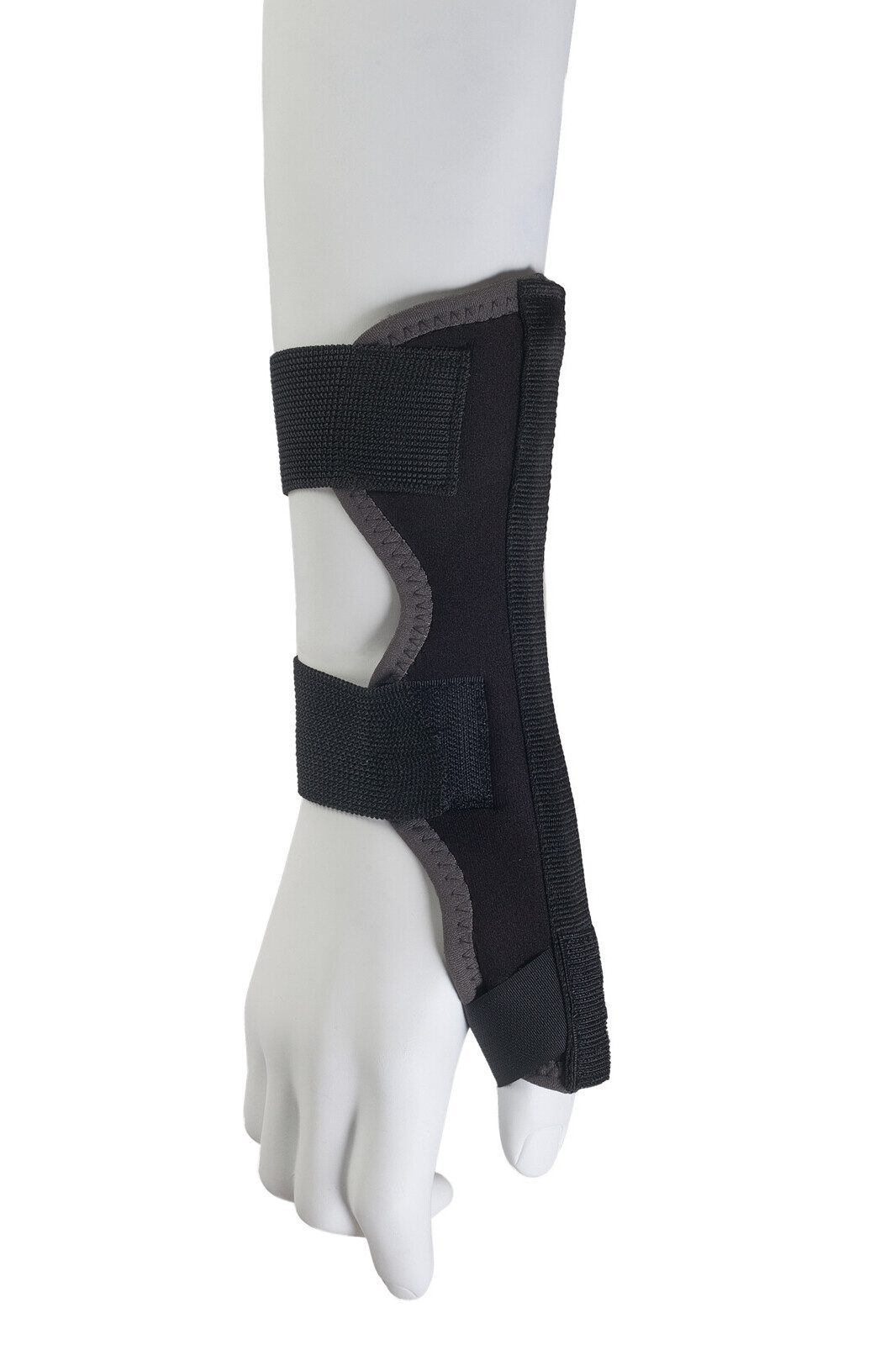 Η διαμορφώσιμη μπανέλα αλουμινίου προσαρμόζεται στον καρπό και στον αντίχειρα, προσφέροντας εξατομικευμένη στήριξη. Διαθέτει δύο ελαστικούς ιμάντες με Velcro που εφαρμόζονται περιμετρικά του καρπού και του αντιβραχίου για καλύτερη συγκράτηση. Ο νάρθηκας αφήνει ελεύθερη την παλάμη και επιτρέπει την κινητικότητα των δακτύλων, ενώ είναι κατάλληλος τόσο για το δεξί όσο και για το αριστερό χέρι.