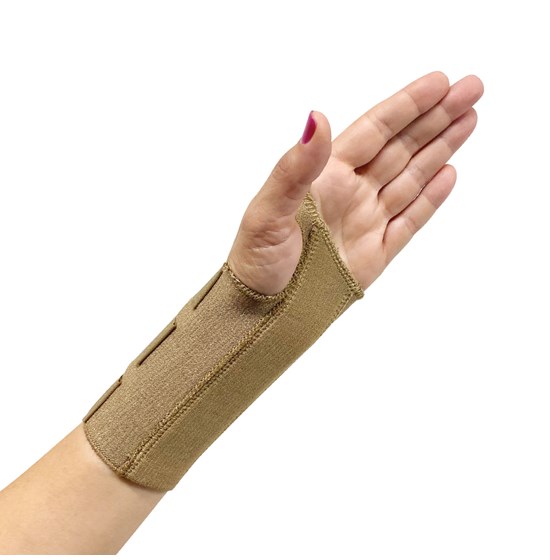 Ο ελαστικός νάρθηκας καρπού 03-2-062 είναι κατασκευασμένος από υλικό ισχυρής συμπίεσης και προσφέρει στήριξη και σταθεροποίηση στην περιοχή του καρπού. Διαθέτει προσθαφαιρούμενη λάμα αλουμινίου που εξασφαλίζει ακινητοποίηση της παλάμης και του καρπού. Ο σχεδιασμός του είναι ανοιχτός στον αντίχειρα, διευκολύνοντας την άνεση και τη χρήση στην καθημερινότητα. Η εφαρμογή γίνεται με τέσσερις αυτοκόλλητες ταινίες velcro που επιτρέπουν ρύθμιση της συμπίεσης. Το προϊόν είναι πλενόμενο και διατίθεται σε εκδόσεις για δεξί και αριστερό χέρι.
