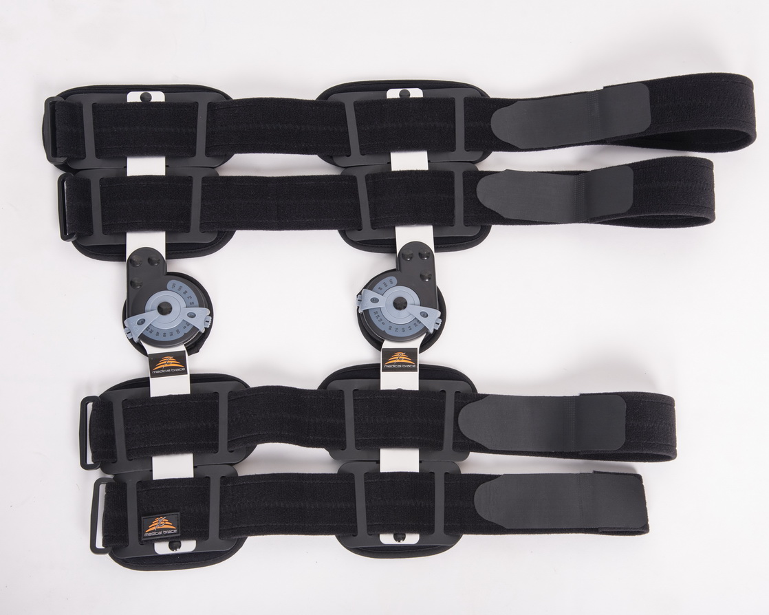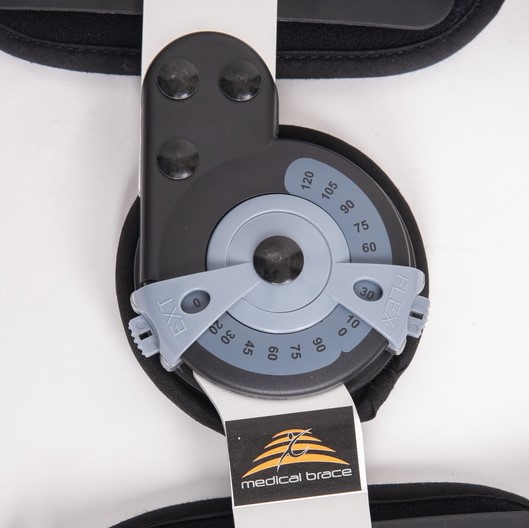 Ο πολυκεντρικός μηχανισμός ρύθμισης επιτρέπει ελεγχόμενη κίνηση: έκταση από 0° έως 90° και κάμψη από 0° έως 120°, προσαρμοζόμενος στις ανάγκες του ασθενούς και στη φάση αποκατάστασης.