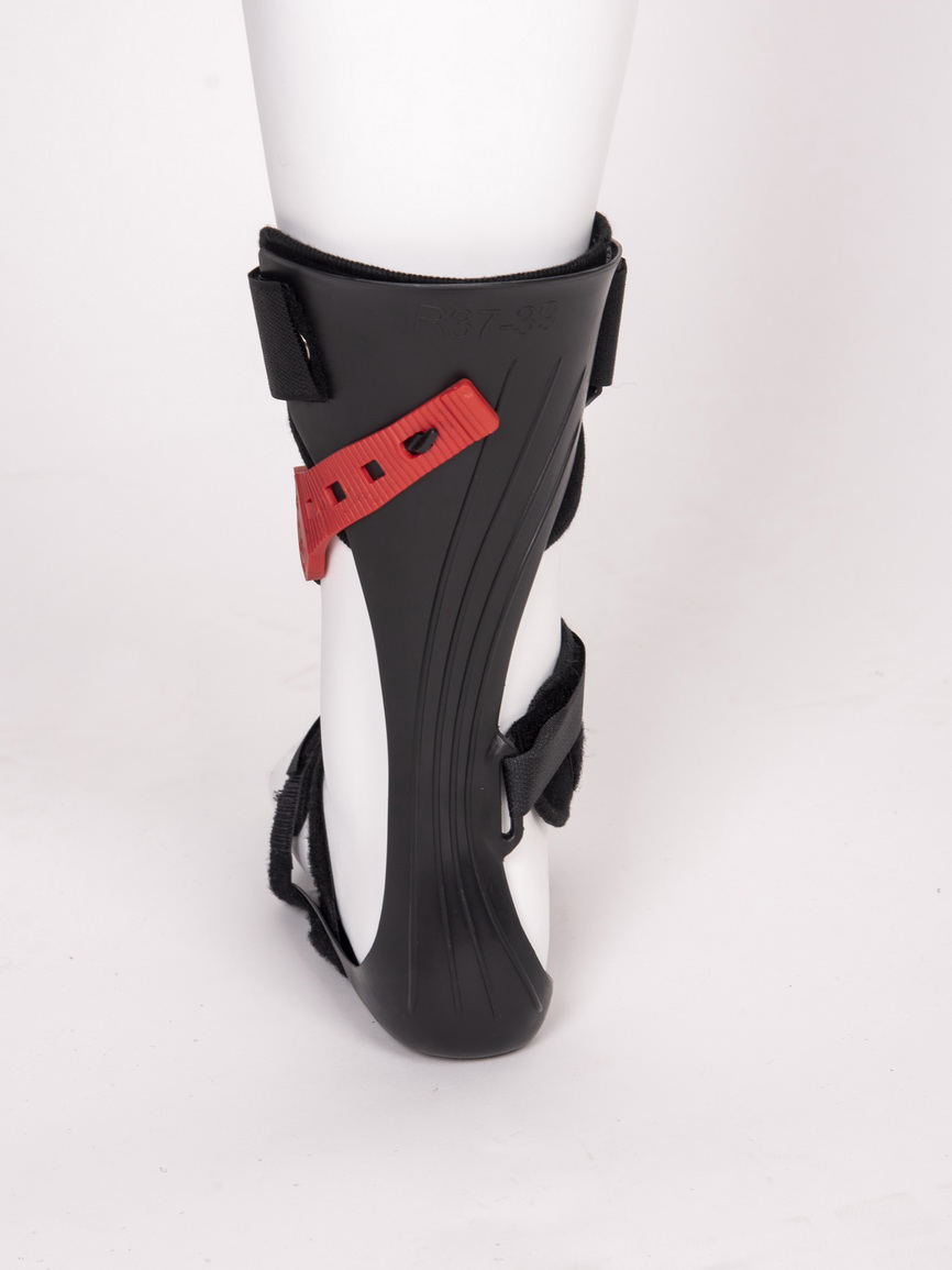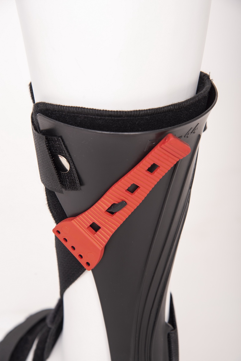 Διαθέτει αυτοκόλλητο Velcro γύρω από το γαστροκνήμιο για στήριξη, ενώ οι ιμάντες τοποθετούνται με χιαστή επίδεση αφήνοντας ελεύθερη την περιοχή των σφυρών. Αυτό μειώνει τα σημεία πίεσης και αυξάνει την άνεση του χρήστη. Ο μεσοραχιαίος ιμάντας σταθερότητας συμβάλλει στον έλεγχο της θέσης πρηνισμού, βελτιώνοντας τη λειτουργικότητα και τη σταθερότητα του ποδιού.