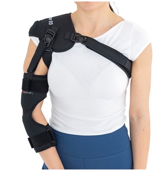 Ο νάρθηκας διαθέτει ανοικτή επίδεση στον βραχίονα και αυτοκόλλητο θωρακικό ιμάντα με ειδική ωμική πελότα για σωστή εφαρμογή. Το σύστημα ρύθμισης απαγωγής του ώμου επιτρέπει εξατομικευμένη τοποθέτηση, ενώ ο ιμάντας βραχίονα επενδεδυμένος με σιλικόνη αποτρέπει τη μετατόπιση. Παρέχει αποφόρτιση μυών και συνδέσμων, μειώνει τον πόνο και είναι κατάλληλος για μακροχρόνια θεραπευτική χρήση. Ο νάρθηκας διατίθεται σε εκδόσεις για δεξί και αριστερό ώμο.
