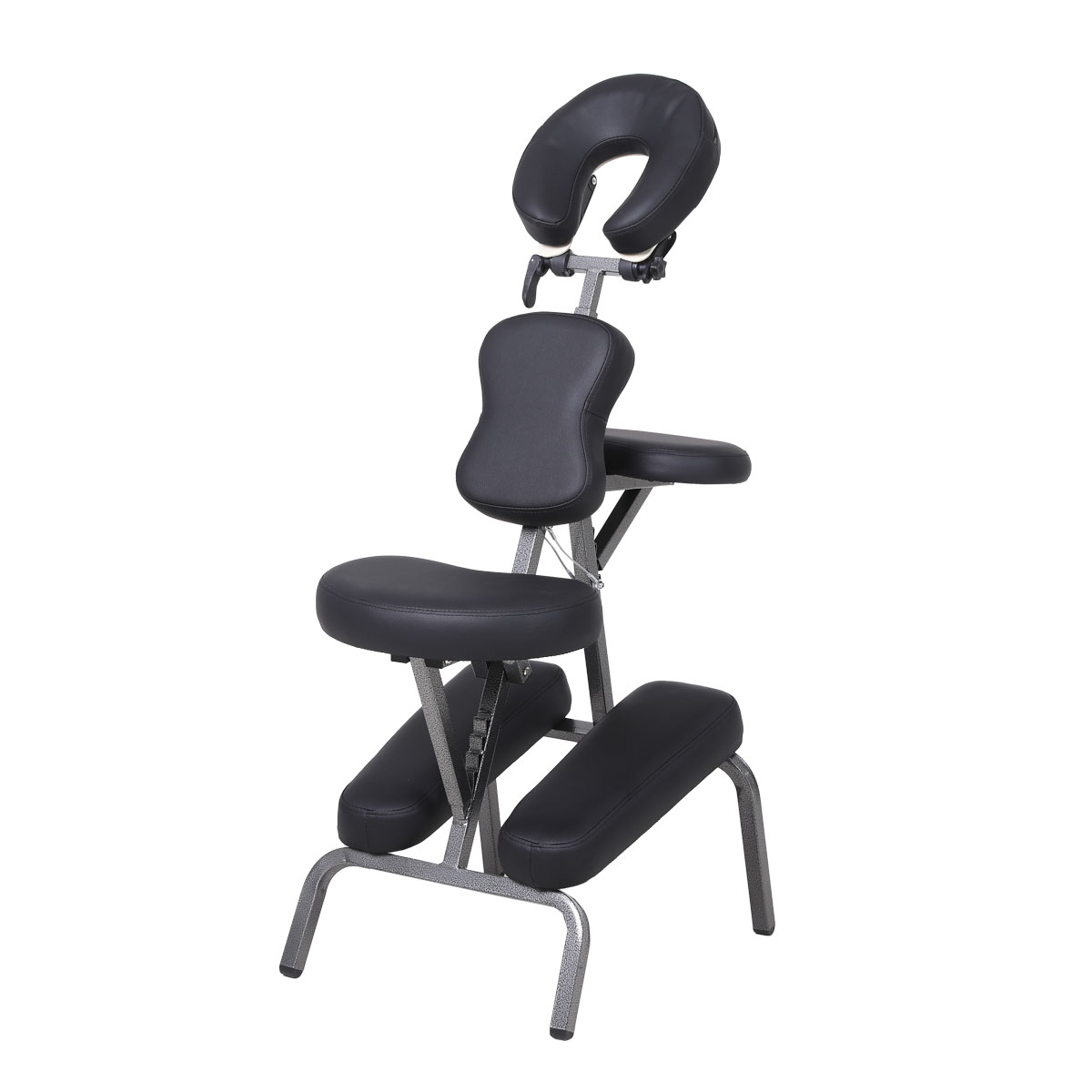 Η πτυσσόμενη καρέκλα μασάζ σε μαύρο χρώμα είναι σχεδιασμένη για να προσφέρει άνεση και στήριξη κατά τη διάρκεια θεραπειών και μασάζ. Ο σιδερένιος σκελετός εξασφαλίζει ανθεκτικότητα, ενώ η επένδυση από PVC δερματίνη με πολυμερικό αφρό προσφέρει εργονομία και ευχάριστη αίσθηση. Χάρη στον πτυσσόμενο σχεδιασμό της, μεταφέρεται εύκολα και αποθηκεύεται χωρίς κόπο.