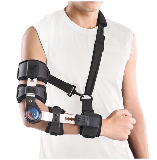 Οι αυτοκόλλητοι ιμάντες με επένδυση σταθεροποιούν το νάρθηκα στο βραχίονα και το αντιβράχιο. Ο πολυκεντρικός μηχανισμός δίνει τη δυνατότητα ακριβούς ελέγχου κάμψης και έκτασης ανά διαστήματα 10°, ενώ διαθέτει και δυνατότητα κλειδώματος σε συγκεκριμένες θέσεις.