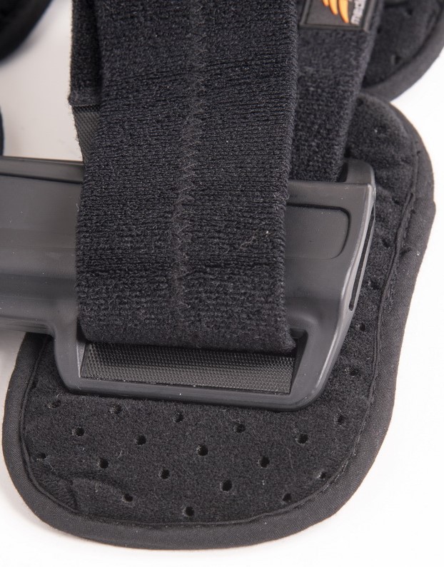 Ο τηλεσκοπικός μηροκνημικός νάρθηκας MB.9011 προσφέρει αξιόπιστη στήριξη και ελεγχόμενη κινητικότητα στο γόνατο, προσαρμοζόμενος εύκολα στις ανάγκες κάθε ασθενή. Το τηλεσκοπικό του σύστημα ρυθμίζει το μήκος από 45 έως 60 εκ., επιτρέποντας προσαρμογή σε διαφορετικούς σωματότυπους. Το γωνιόμετρο διαθέτει δυνατότητες ρύθμισης τόσο σε έκταση όσο και σε κάμψη, ενώ το quick lock διευκολύνει τον έλεγχο σε συγκεκριμένες γωνίες. Τα pads είναι ανατομικά και αντιολισθητικά, παρέχοντας άνεση και σταθερότητα, ενώ οι αυτοκόλλητοι ιμάντες Velcro εξασφαλίζουν εύκολη τοποθέτηση και συγκράτηση. Οι μεταλλικές μπανέλες είναι ελαφριές, καθιστώντας τον νάρθηκα πρακτικό για καθημερινή χρήση.