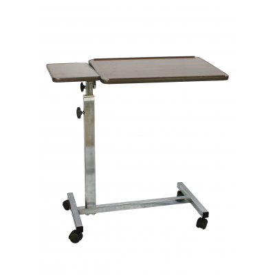 Το τραπεζάκι κλίνης AC‑863 διαθέτει δύο επιφάνειες, μία σταθερή και μία περιστρεφόμενη, προσφέροντας ευελιξία στη χρήση. Η στιβαρή μεταλλική βάση με τέσσερις τροχούς και φρένα εξασφαλίζει σταθερότητα και ευκολία στη μετακίνηση. Ο χειροκίνητος μηχανισμός ρύθμισης ύψους επιτρέπει την εύκολη προσαρμογή στην επιθυμητή θέση, δίνοντας τη δυνατότητα στον ασθενή ή τον φροντιστή να το χρησιμοποιεί για σίτιση, ανάγνωση ή εργασία χωρίς να σηκώνεται από το κρεβάτι.